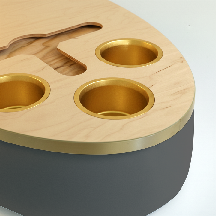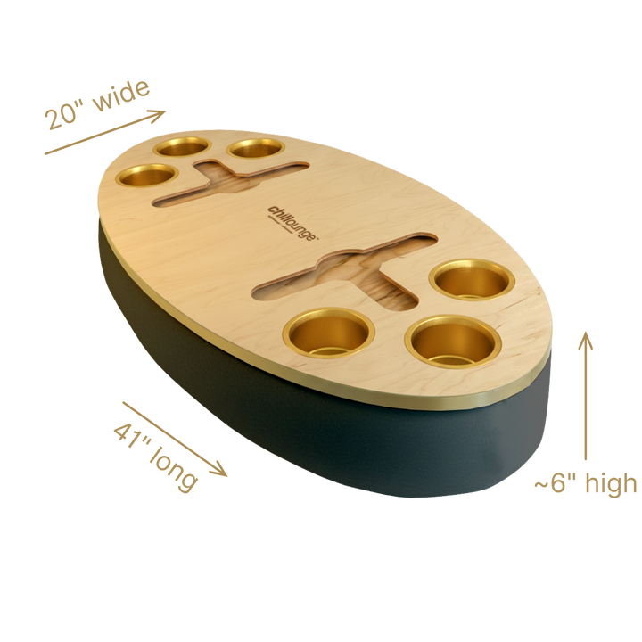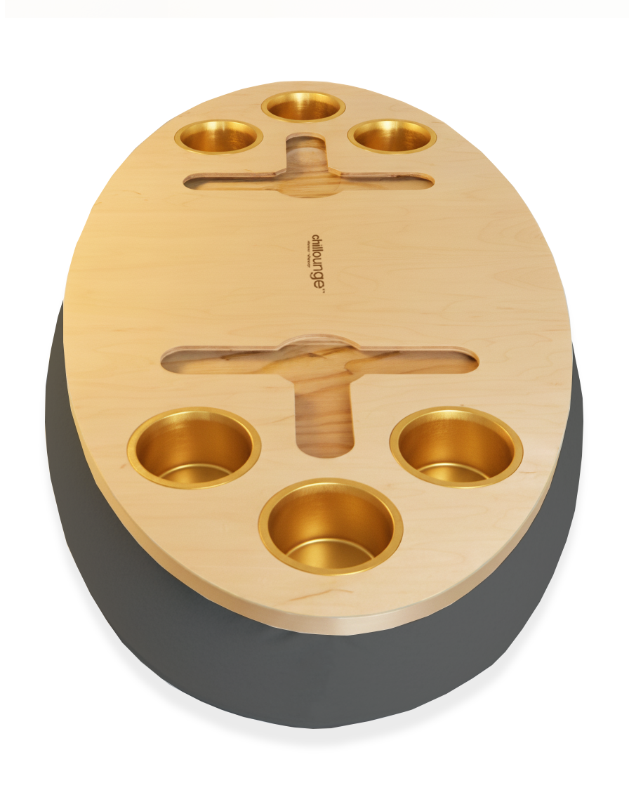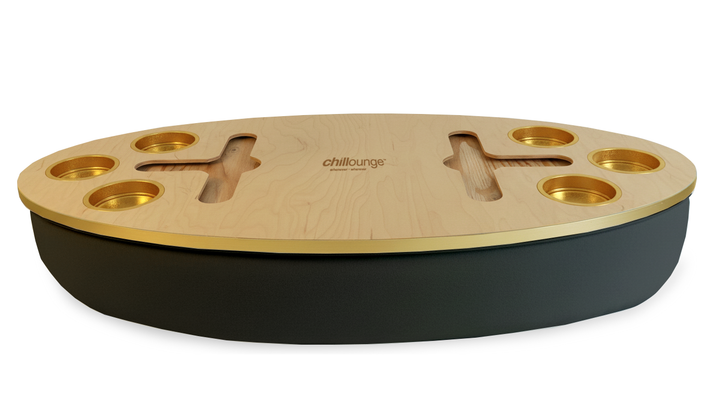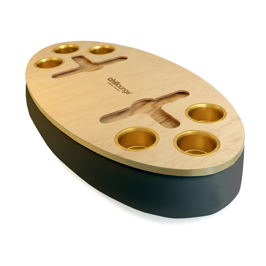 The Bon Vivant Tray delivers effortless elegance in every moment — from breakfast in bed to cocktails at sunset. Its beanbag base adapts to most surfaces, ensuring stability and comfort, while the anti-slip coated top, patented stemware rail, and metallic gold or silver cupholders make it both beautiful and functional.