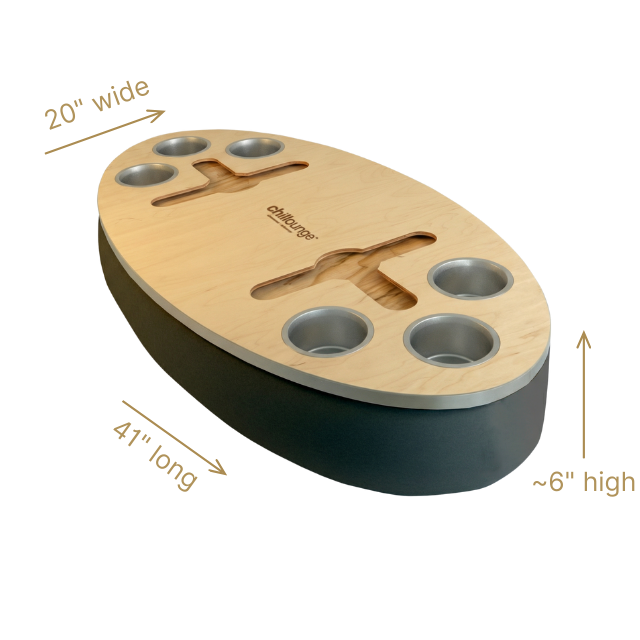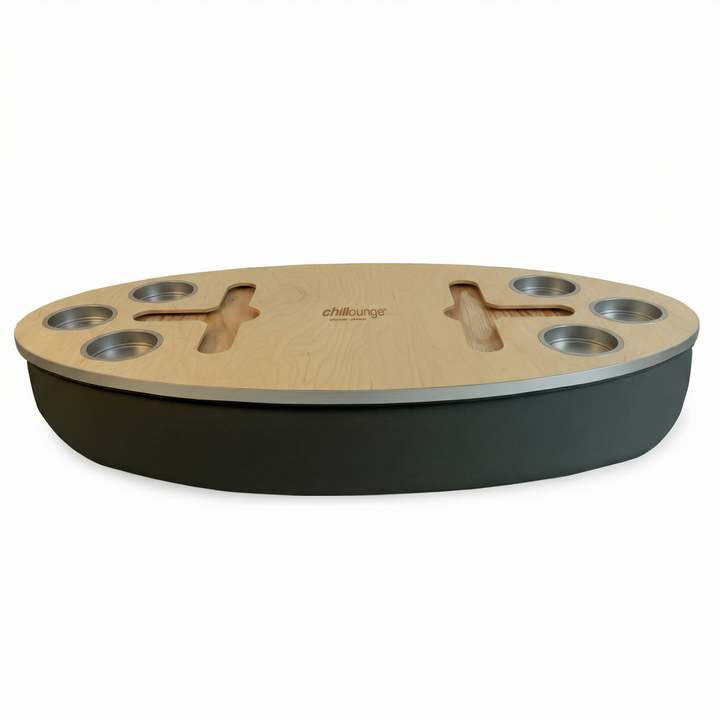 The Bon Vivant Tray delivers effortless elegance in every moment — from breakfast in bed to cocktails at sunset. Its beanbag base adapts to most surfaces, ensuring stability and comfort, while the anti-slip coated top, patented stemware rail, and metallic gold or silver cupholders make it both beautiful and functional.
