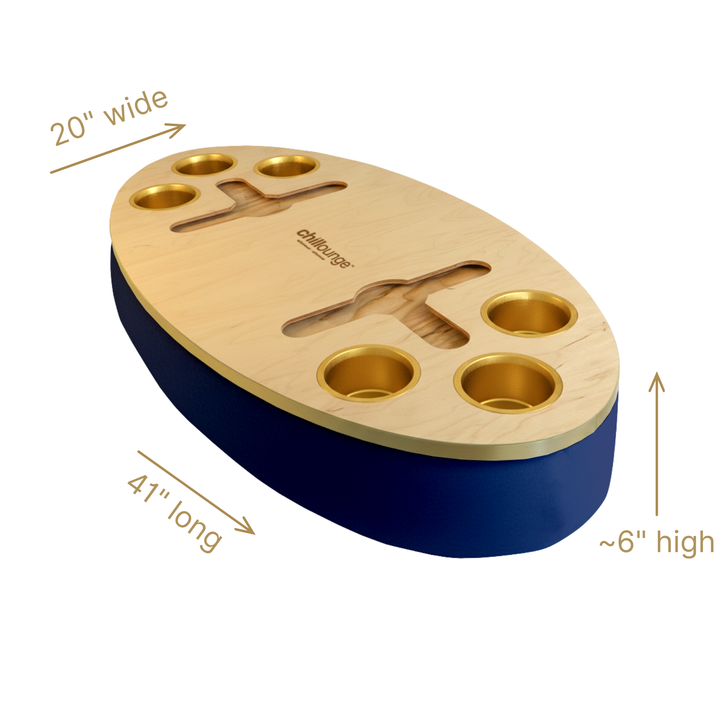 The Bon Vivant Tray delivers effortless elegance in every moment — from breakfast in bed to cocktails at sunset. Its beanbag base adapts to most surfaces, ensuring stability and comfort, while the anti-slip coated top, patented stemware rail, and metallic gold or silver cupholders make it both beautiful and functional.