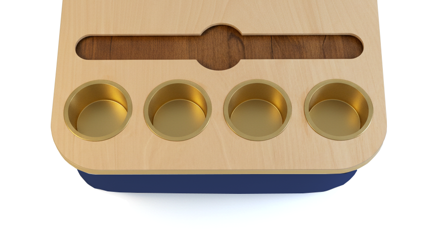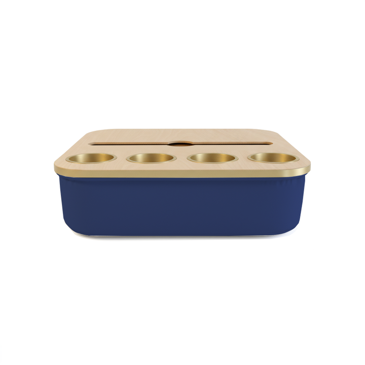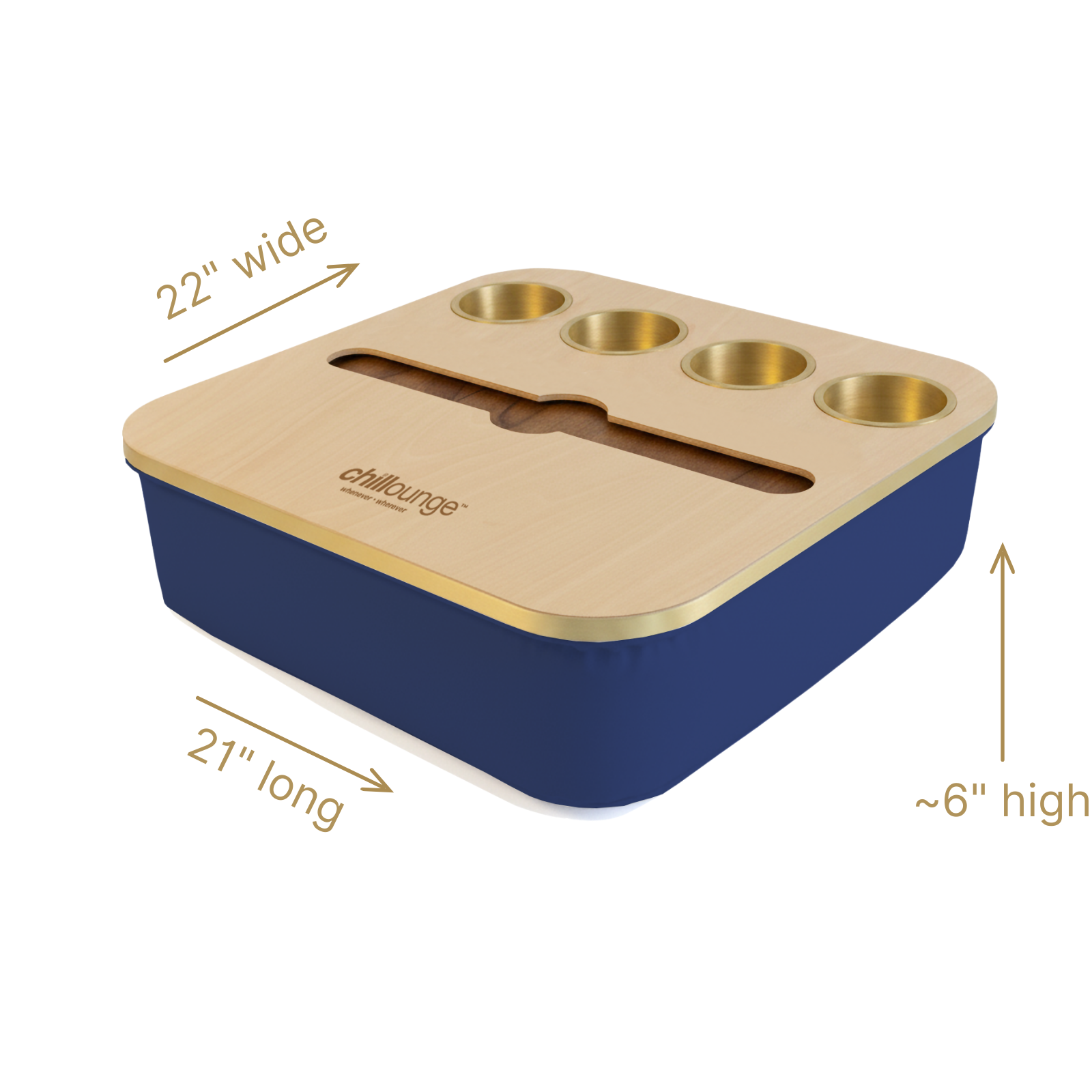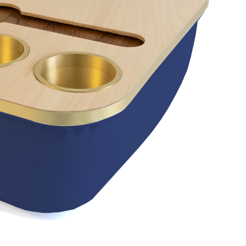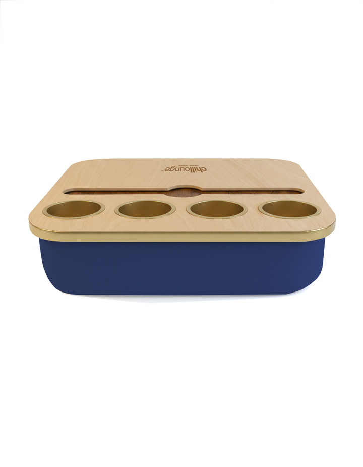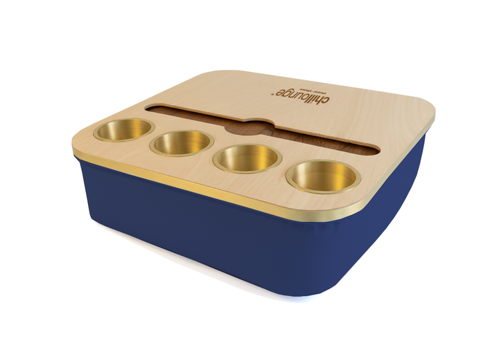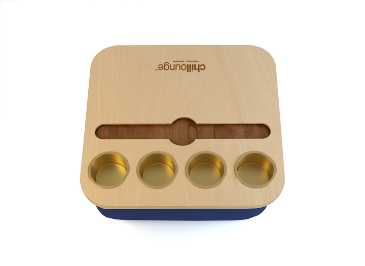 Blending elegance with practicality, the Duo Tray features a beanbag base that adapts to most surfaces, keeping drinks and snacks comfortably within reach. Its anti-slip coated top, metallic gold or silver cupholders, and patented stemware rail create a stable, refined experience that enhances every moment of relaxation.