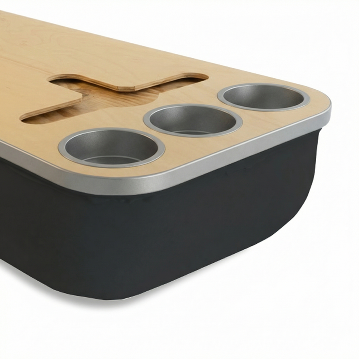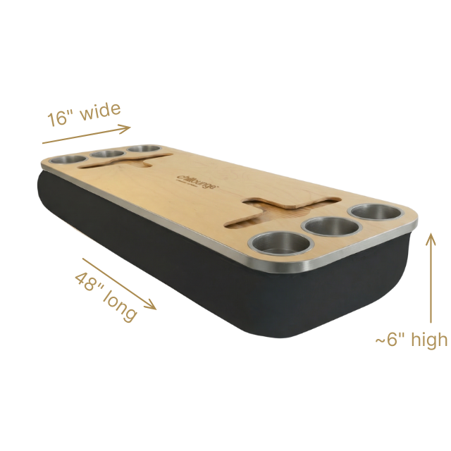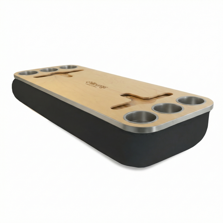 Crafted to bring effortless elegance to every moment, the Socialite Tray combines form and function. Its beanbag base adapts to most surfaces, creating a stable, elevated experience for dining, drinks, or downtime. With an anti-slip coated top, patented stemware rail, and metallic cupholders in gold or silver, it’s a lifestyle piece that enhances both convenience and atmosphere.