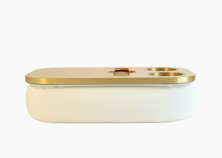 The Soloist Tray delivers elegance and ease in one. Its beanbag base adapts to most surfaces, ensuring balance and comfort, while the anti-slip coated top, metallic gold or silver cupholders, and patented stemware rail offer refined practicality. From morning espresso to sunset wine, it’s built to complement every mood and moment.