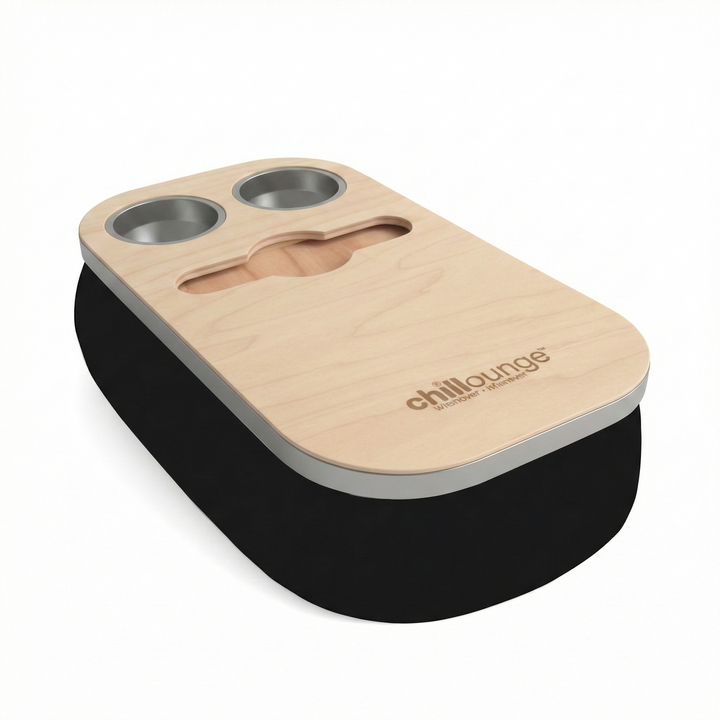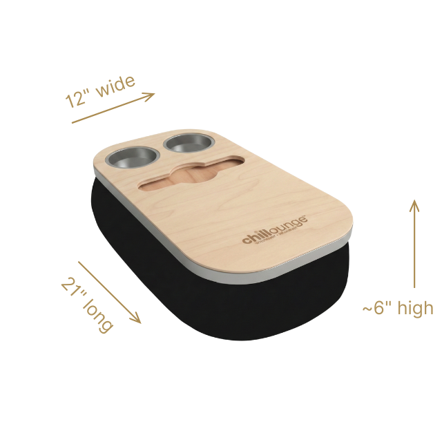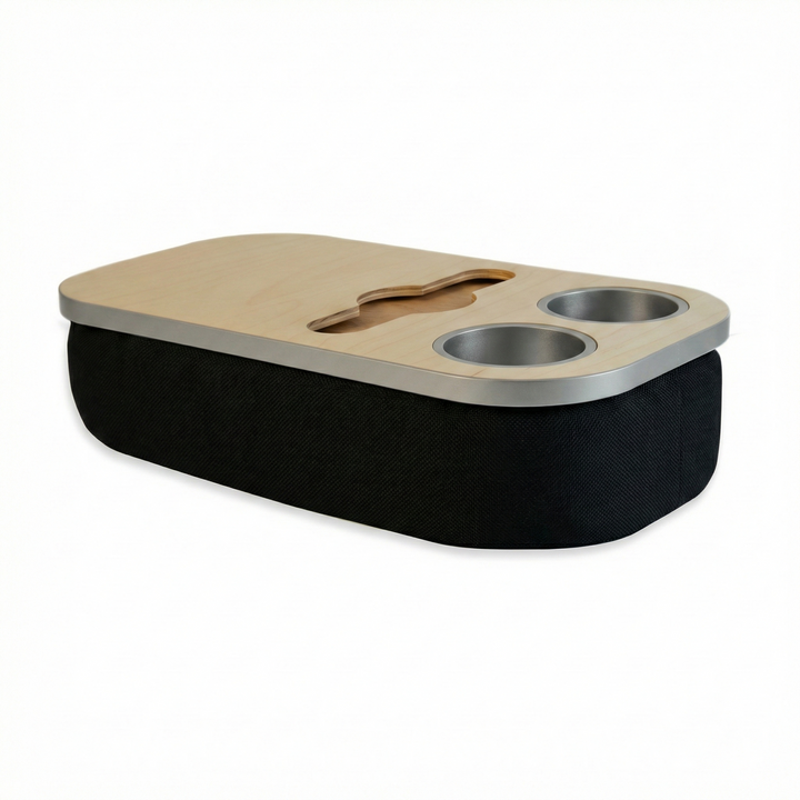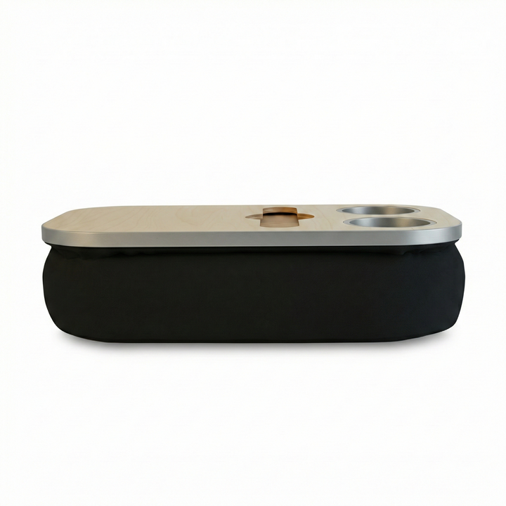The Soloist Tray delivers elegance and ease in one. Its beanbag base adapts to most surfaces, ensuring balance and comfort, while the anti-slip coated top, metallic gold or silver cupholders, and patented stemware rail offer refined practicality. From morning espresso to sunset wine, it’s built to complement every mood and moment.