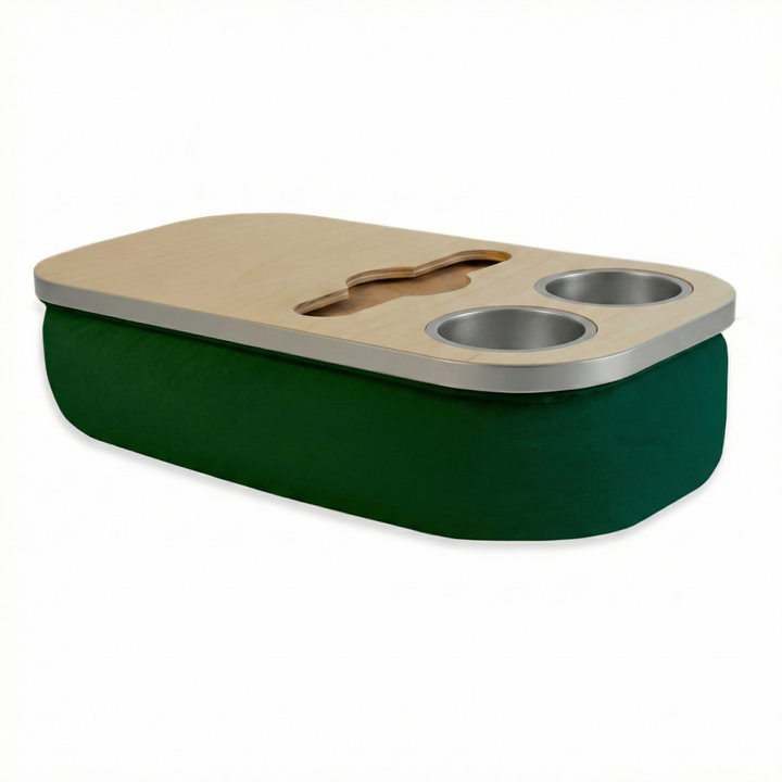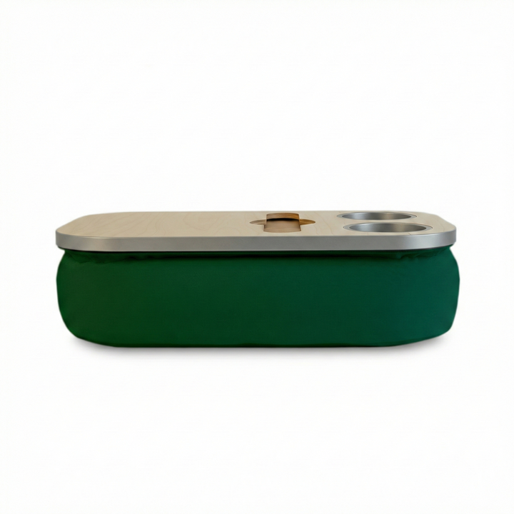 The Soloist Tray delivers elegance and ease in one. Its beanbag base adapts to most surfaces, ensuring balance and comfort, while the anti-slip coated top, metallic gold or silver cupholders, and patented stemware rail offer refined practicality. From morning espresso to sunset wine, it’s built to complement every mood and moment.