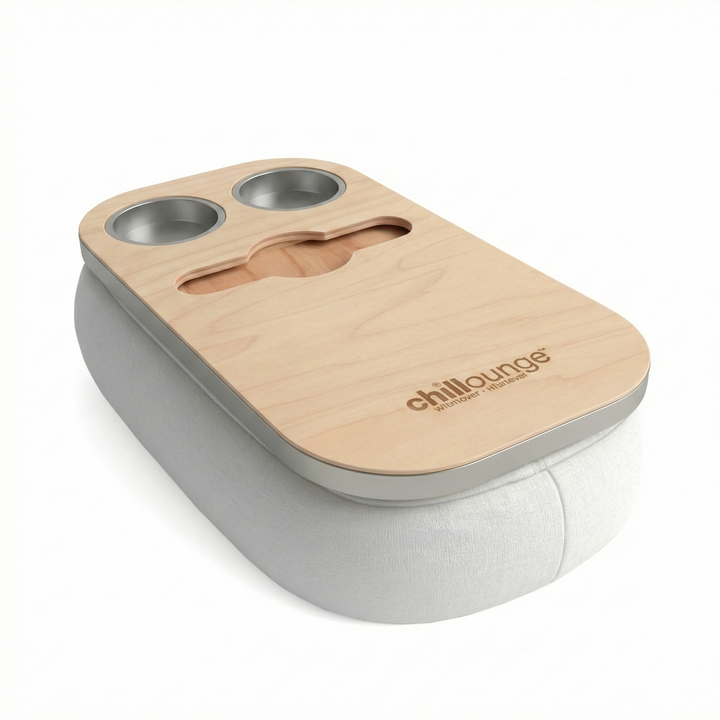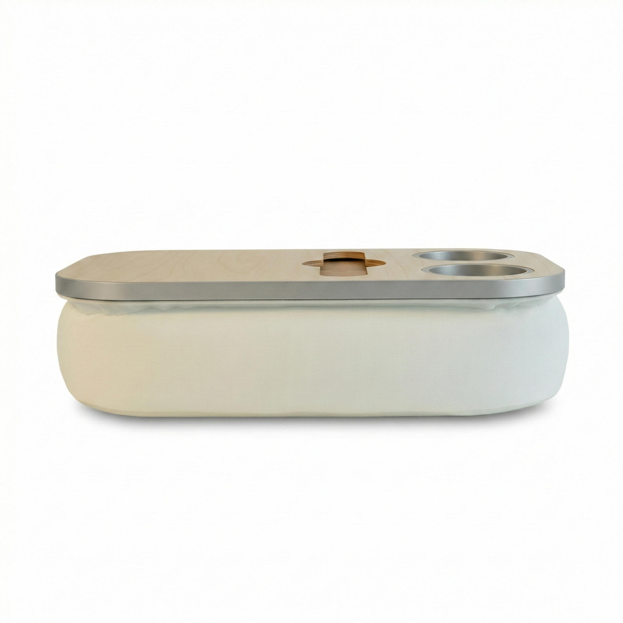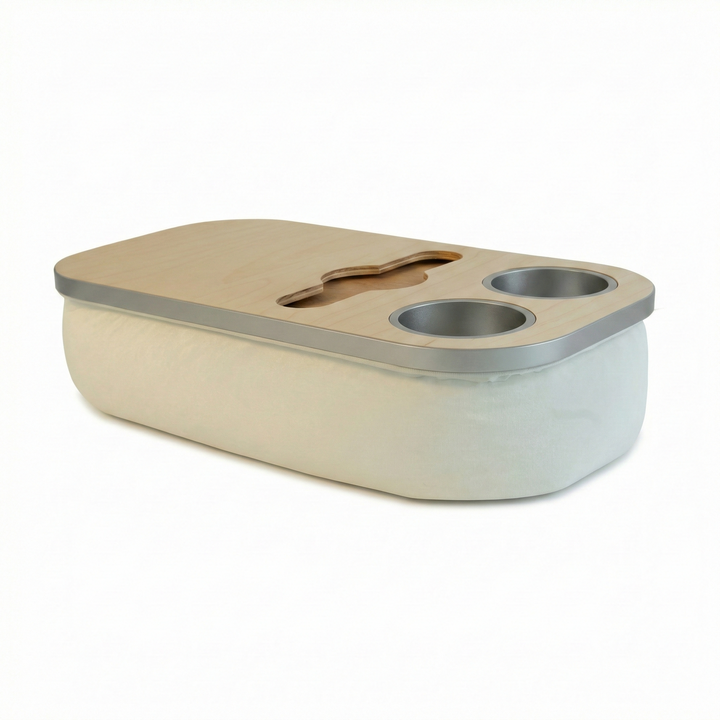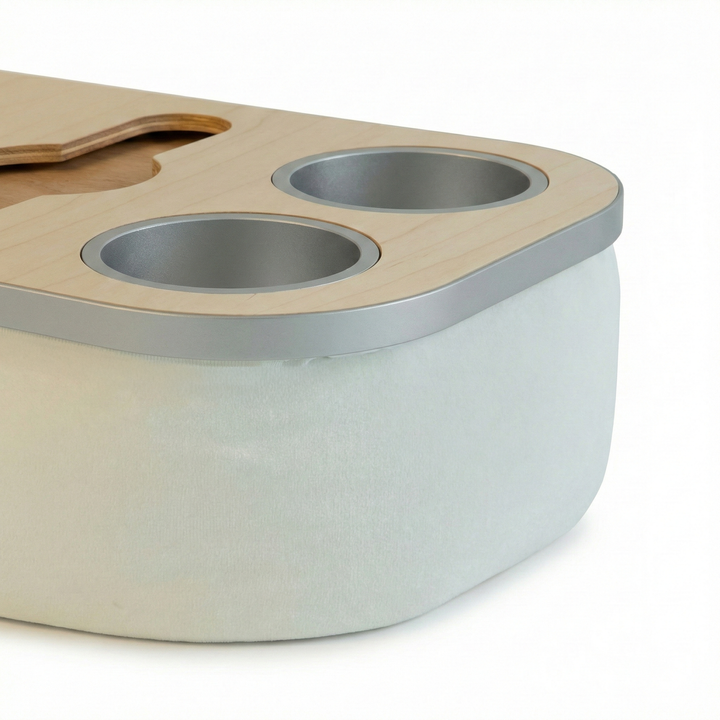 The Soloist Tray delivers elegance and ease in one. Its beanbag base adapts to most surfaces, ensuring balance and comfort, while the anti-slip coated top, metallic gold or silver cupholders, and patented stemware rail offer refined practicality. From morning espresso to sunset wine, it’s built to complement every mood and moment.